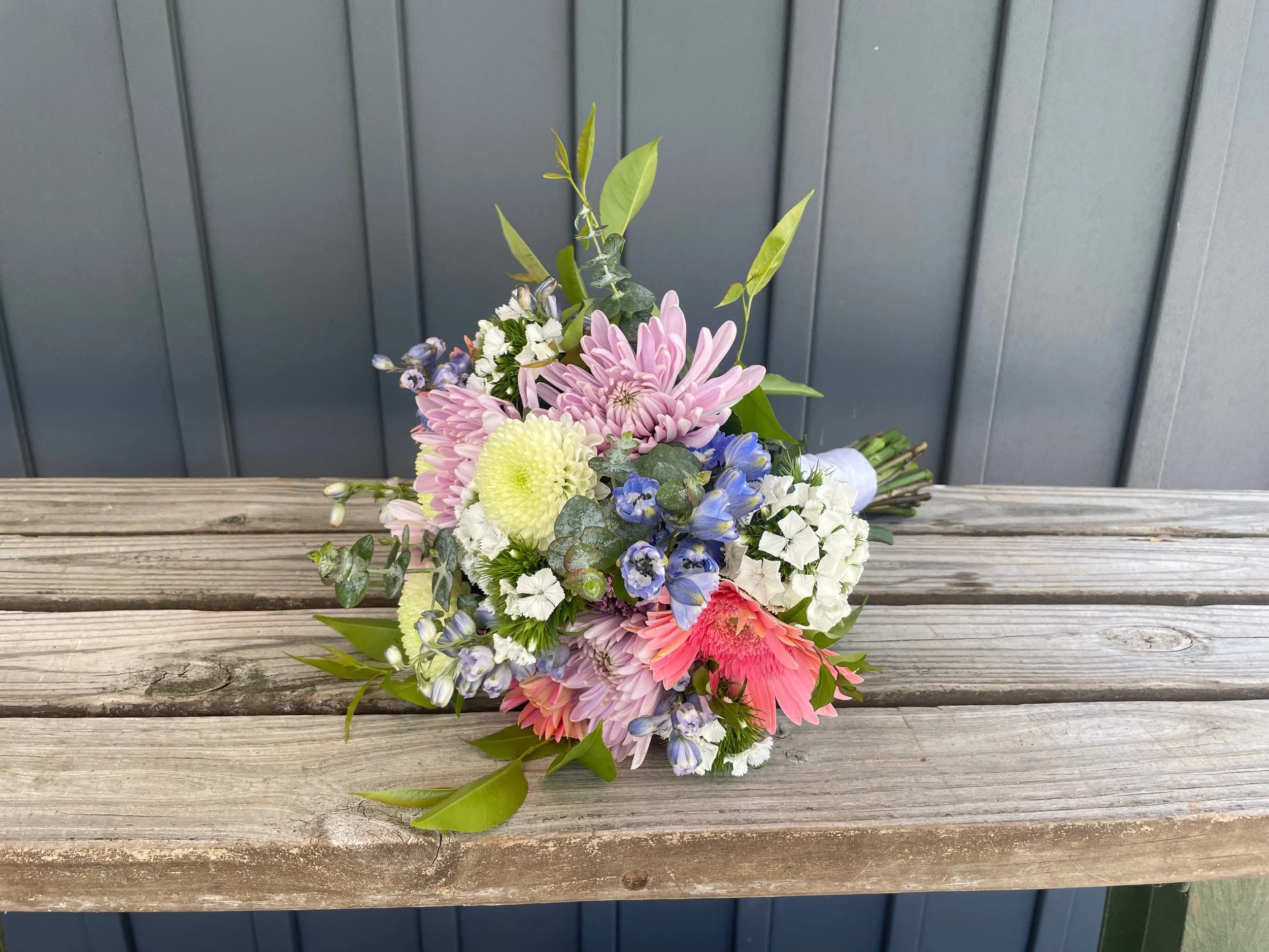 Locally-grown wedding flowers for DIY brides. We design and create your bridal bouquet, boutonnieres, and key arrangements, then provide farm-fresh blooms so you can design your own centerpieces and reception pieces. Professional quality meets creative freedom.
